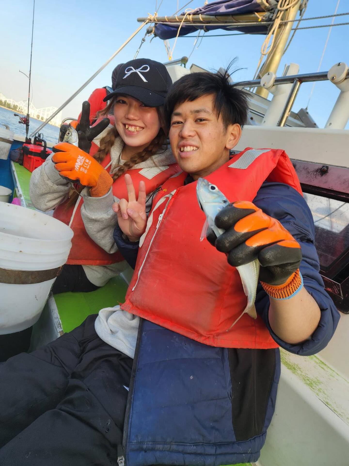 船の足元には、海水を流すポンプがあり水浸しになることがありますので、スニーカーだと濡れることがあります。